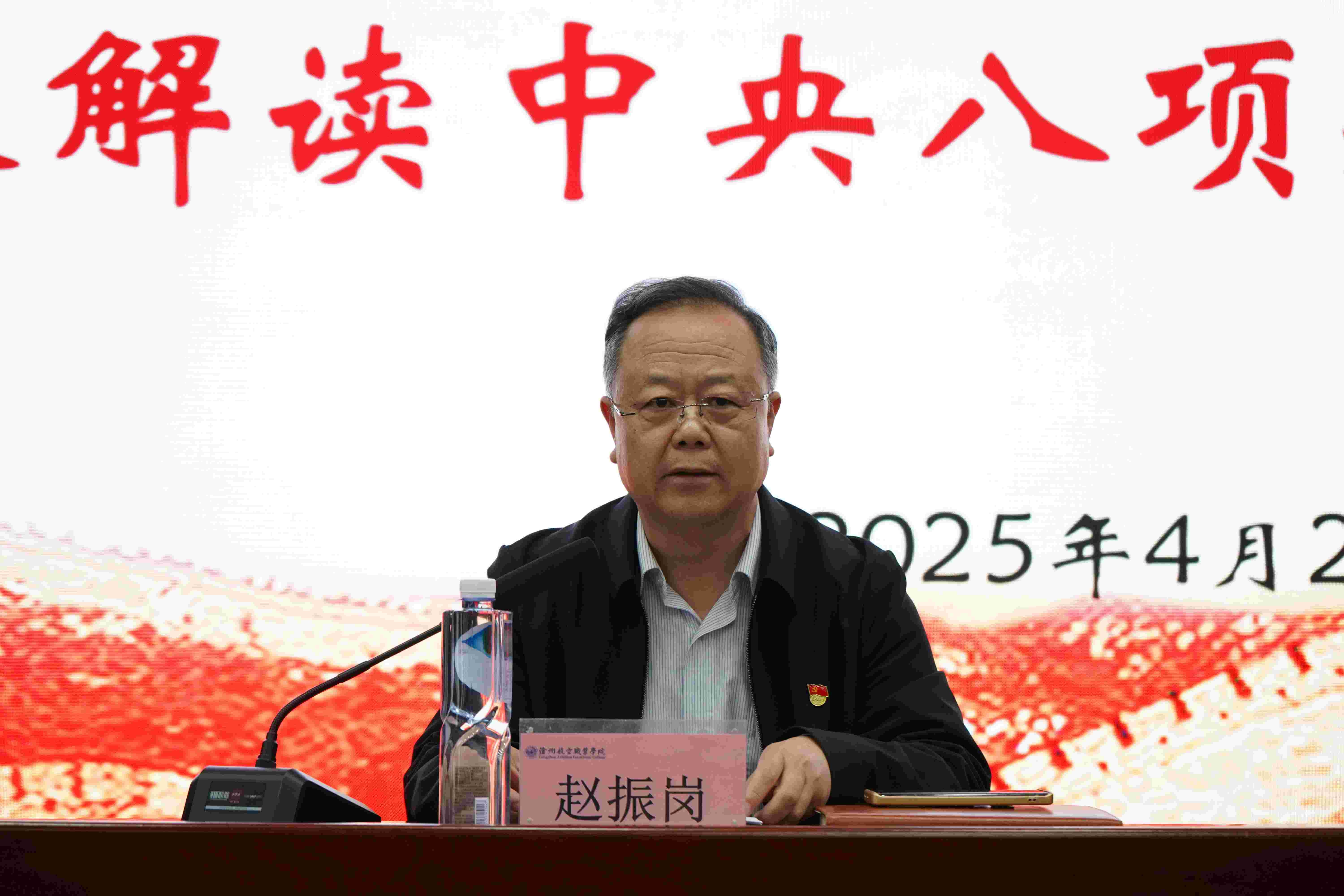 4月21日下午,我校在崇德楼学术报告厅举办深入贯彻中央八项规定精神学习教育读书班启动仪式暨专家解读中央八项规定精神培训会。校党委书记赵振岗做动员讲话,河北建新集团教育管理委员会副主任校长、副校长田树仁、校长助理孙维连出席,会议特邀中共沧州市委党校马克思主义和哲学教研室主任宁丹为全校党员干部师生解读中央八项规定精神,党委副书记翟福顺主持。