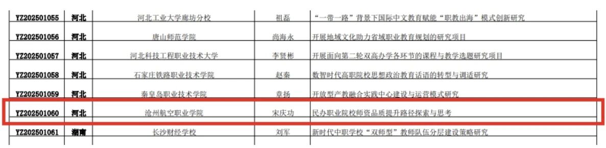 我校于2024年加入中国航协,同年申请并获批该协会设立的研究项目4项,其中宋庆功教授主持的《民航民办职业院校师资品质提升路径探索与思考》为重点课题。