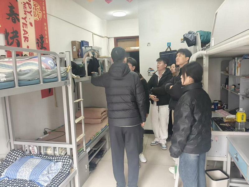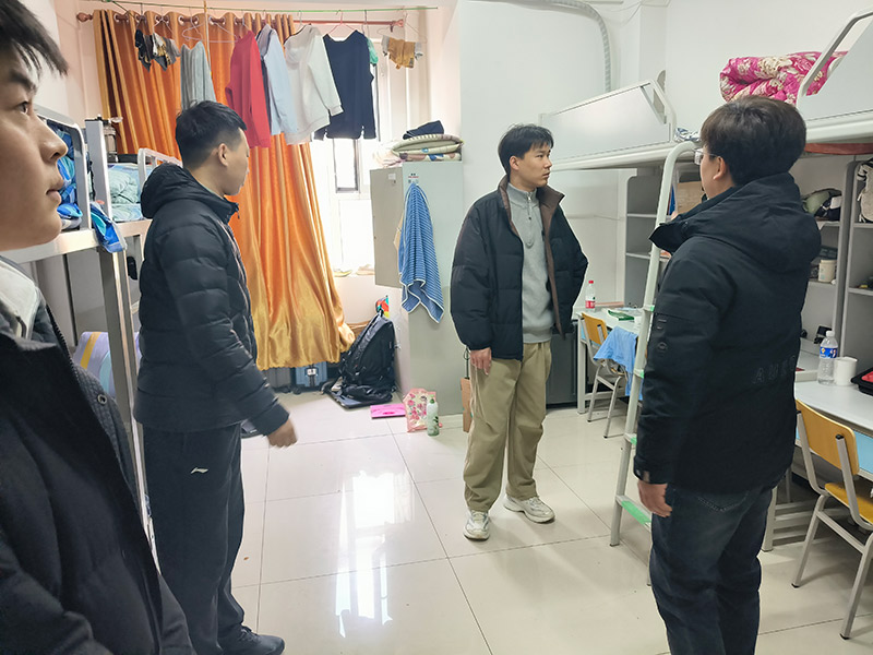 检查过程中,崔书记深入各宿舍楼栋,细致查看每间宿舍的安全状况与卫生环境,现场听取辅导员隐患排查与整改推进情况汇报。崔书记强调,宿舍是学生日常学习生活的重要空间,安全是底线、整洁是底色,要加强安全教育引导,帮助学生养成文明自律、安全规范的住宿习惯,共同打造温馨、安全、整洁的育人环境。