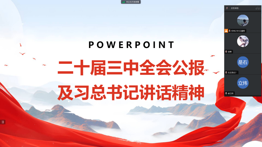 为认真贯彻落实党的二十届三中全会精神和习近平总书记重要讲话精神,近日,智能制造系党总支积极动员所属学生开展线上学习党的二十届三中全会公报及习总书记讲话精神学习活动。