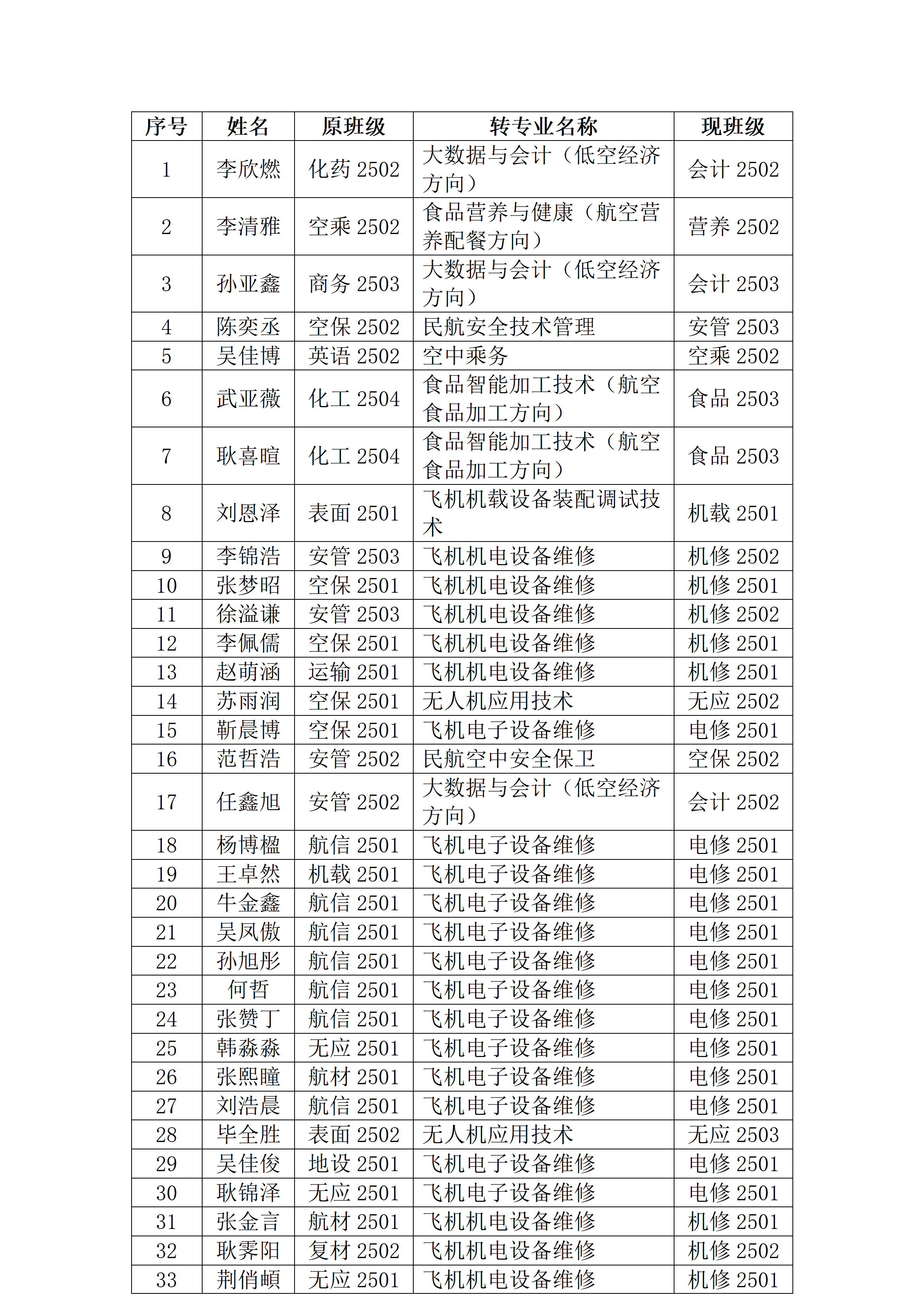 2025级学生转专业情况公示