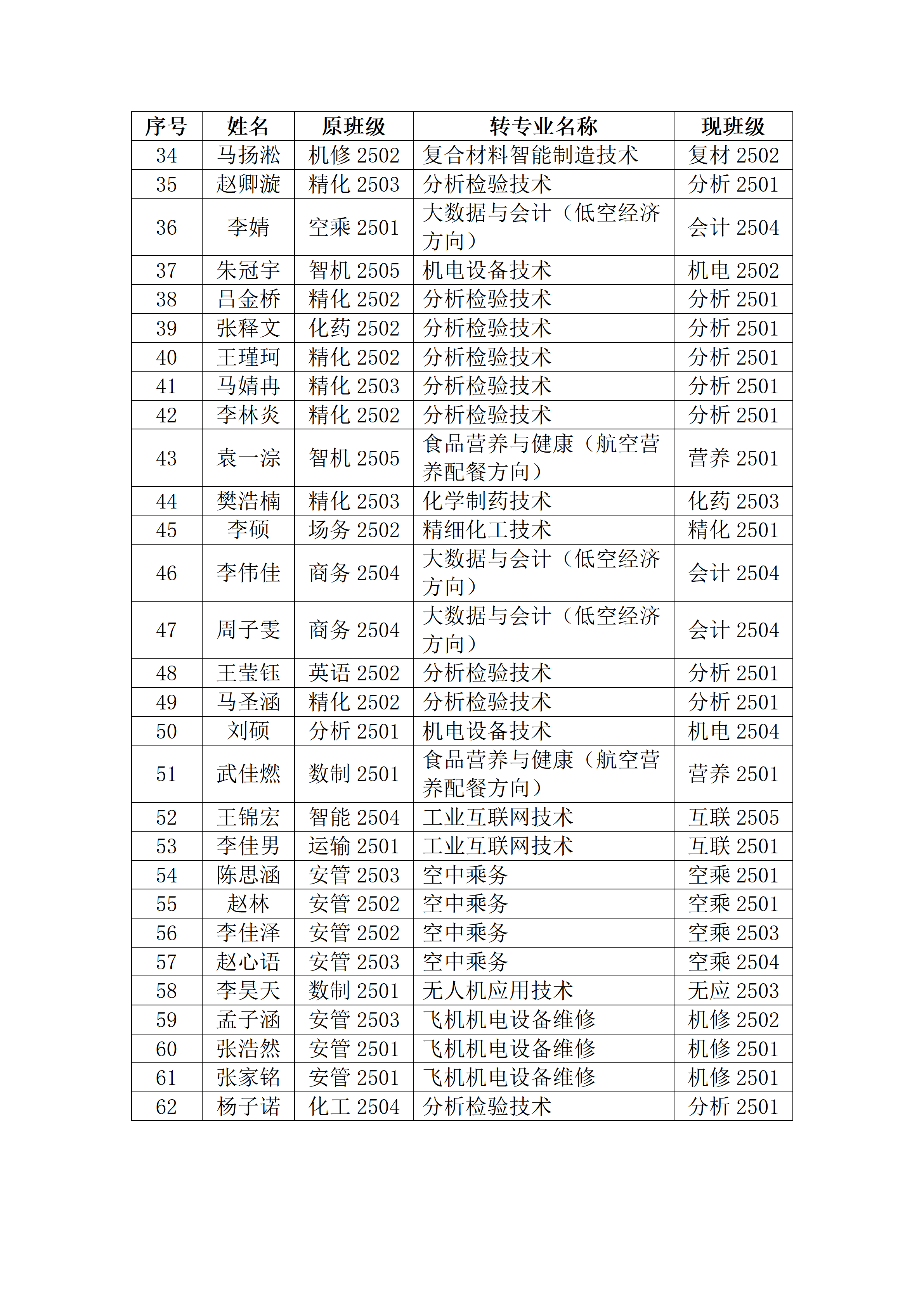 根据学院学生转专业管理规定,现将2025级62名转专业学生名单予以公示,名单如下