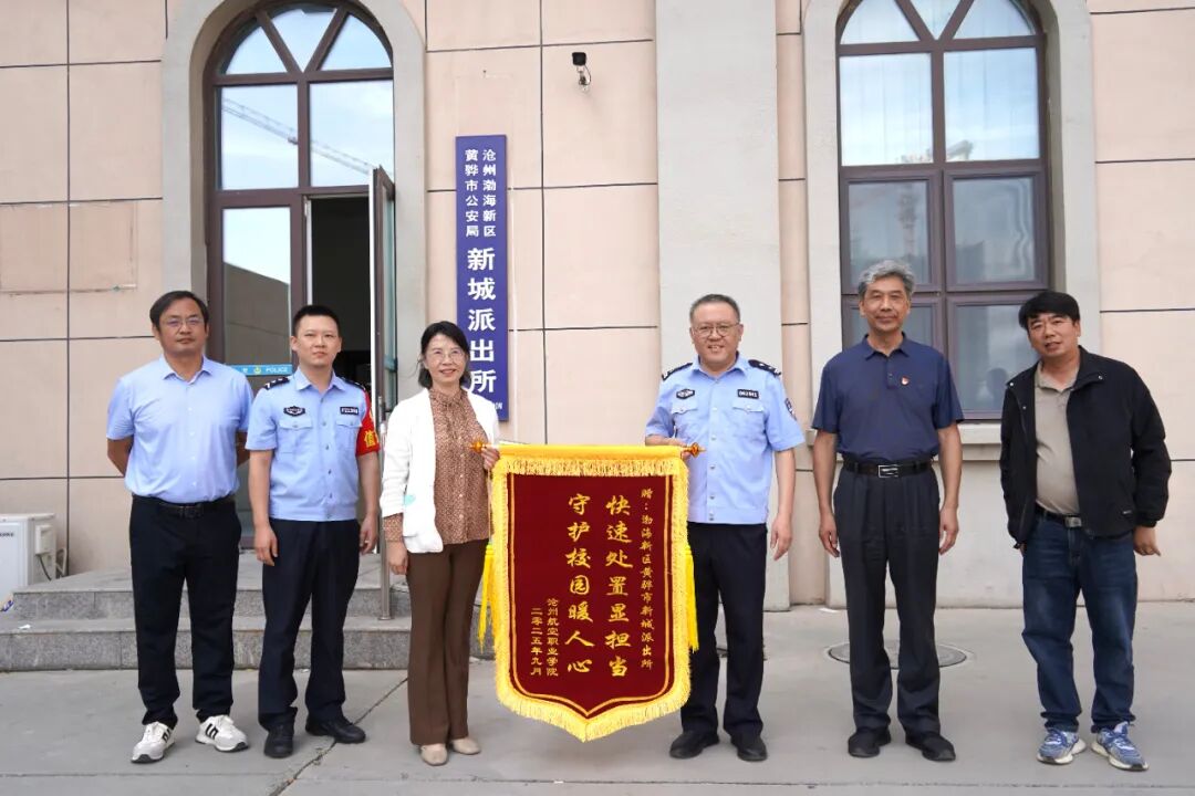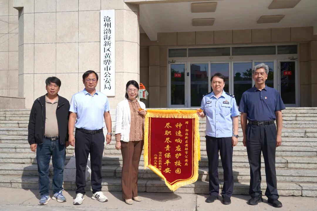 深化校警合作,共筑平安校园 | 我校向渤海新区黄骅市公安局和新城派出所赠旗