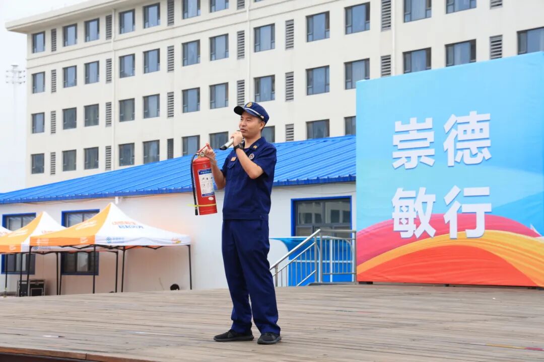 中捷消防队消防员高嵩为大一新生进行了消防安全培训。他围绕两大核心内容展开:一是初起火灾扑救,明确灭火器使用方法及注意事项;二是火灾逃生技巧,具体包括捂住口鼻、压低身体、使用简易式防毒面具等。