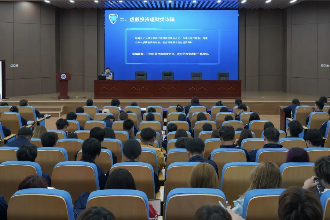 活动现场,胡博程结合真实案例,深入浅出地剖析了当前高发的电信诈骗类型,如刷单返利、冒充客服、虚假购物、网络贷款等,提醒师生们提高警惕,不轻信、不转账、不透露个人信息。