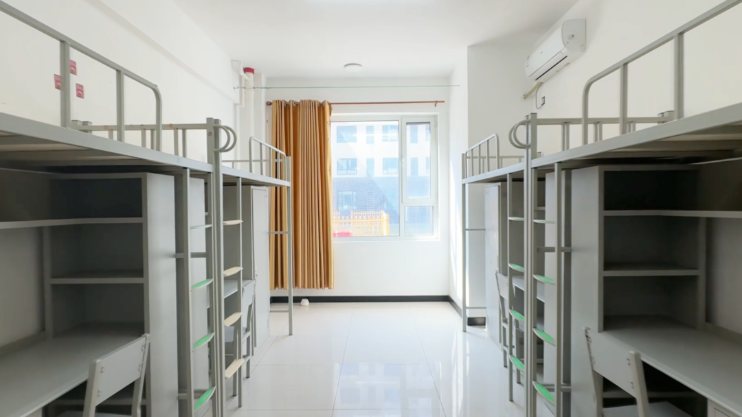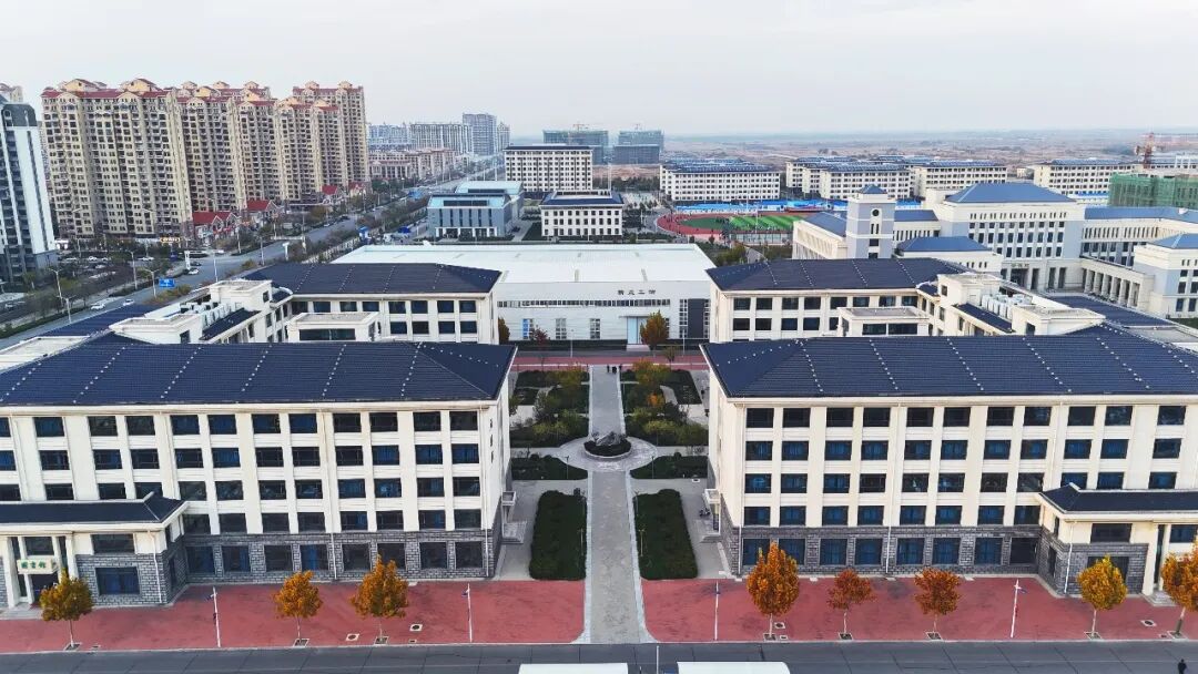学校占地 800 亩,坐落于渤海之滨,毗邻黄骅港金沙滩、南大港湿地,环境优美、宜学宜居。图书馆、体育馆、各类球场等文体设施齐全,宿舍为四 / 六人间,配备独立卫浴、中央空调、地暖、电梯,每层设洗衣房、热水房,生活条件舒适便捷。