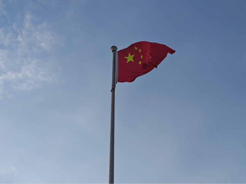 五星红旗在蓝天中迎风飘扬,成为校园里最动人的风景。