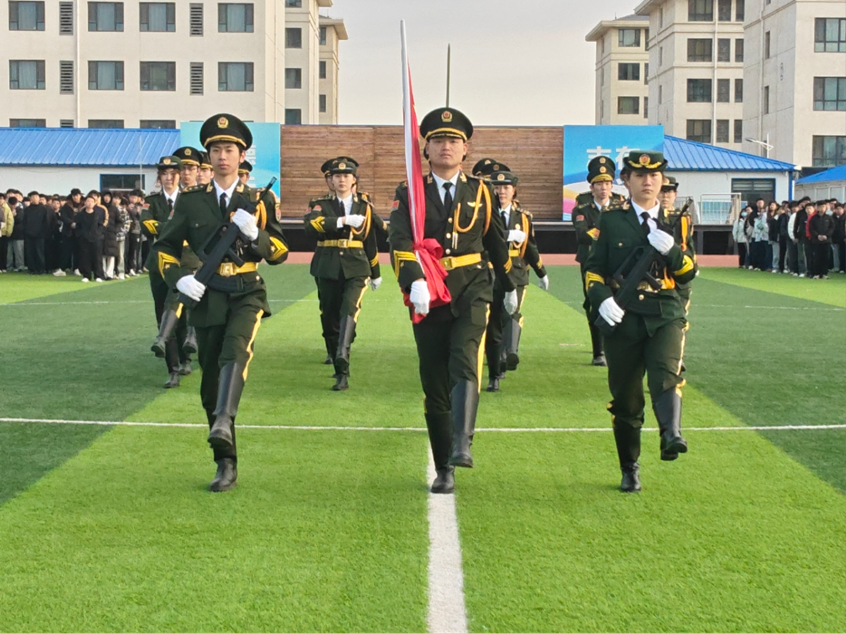 随着雄壮的国歌奏响,升旗手奋力挥臂,五星红旗迎着朝阳冉冉升起。全体师生肃立注目,齐唱国歌,嘹亮的歌声响彻校园,爱国情怀在每个人心中升腾。