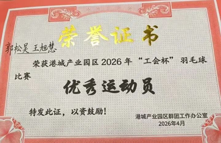 羽球逐光,不负热爱|我校学子在2026年港城产业园区“工会杯”羽毛球比赛中荣获“优秀运动员”称号