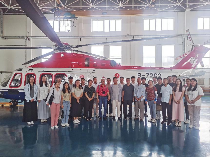在中信海直天津分公司,调研教师深入直升机机库学习主流机型结构、维修技术及运行原理,并与技术人员就相关议题进行了深入交流。