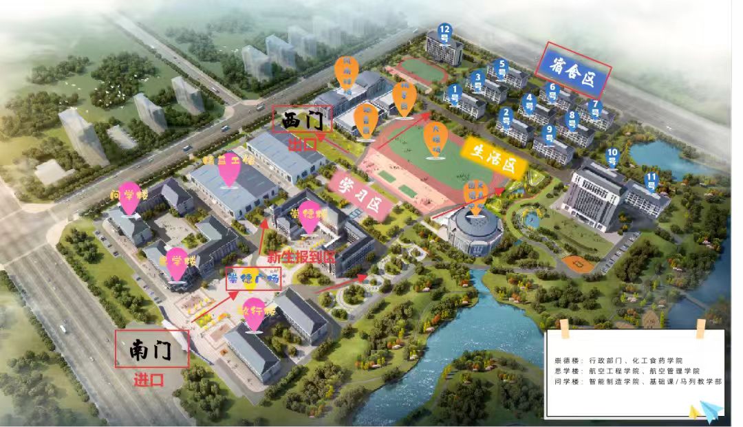 (7)9月7日报到当天新生及家长只能由学校南门进,西门出。报到当天学校南门只进不出,学校西门只出不进