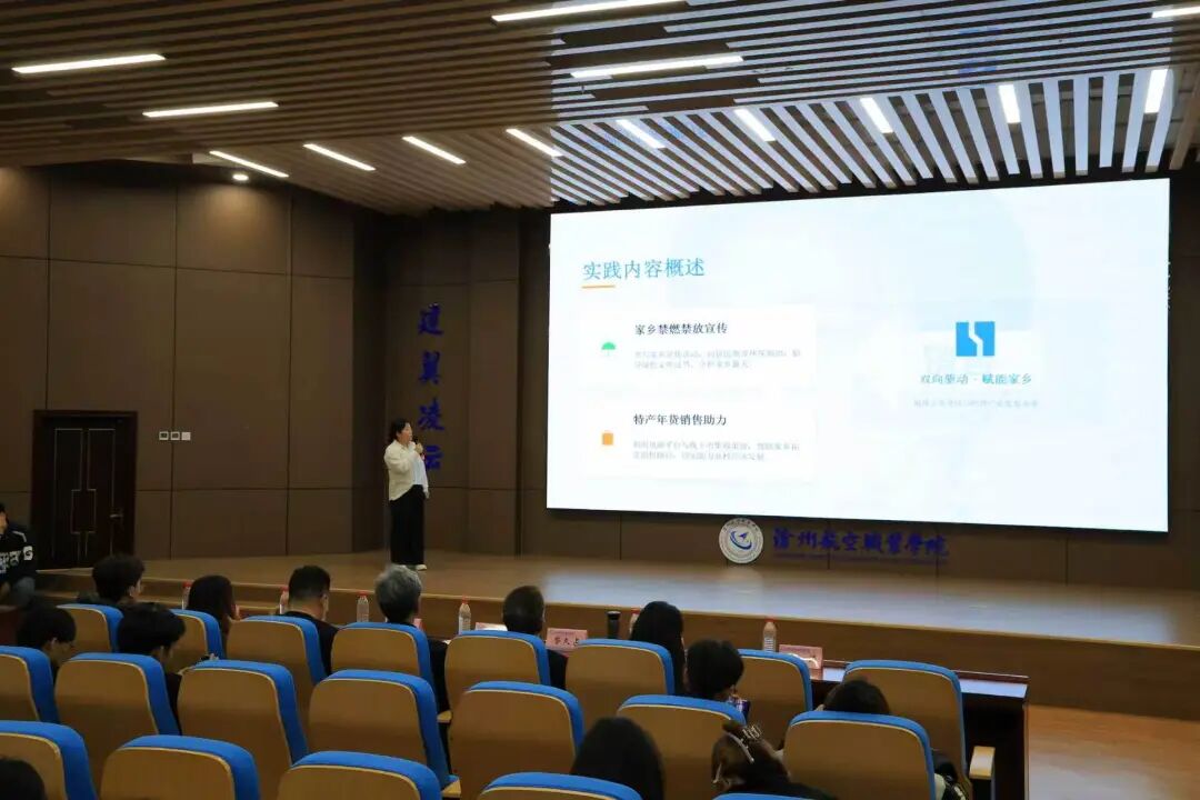 有的同学分享了在基层政府参与政务实践的经历,深刻体会到“为人民服务”不仅是一句口号,更是无数个日夜的坚守与付出;有的同学讲述了参与社区志愿服务、关爱留守儿童和孤寡老人的感人瞬间,在奉献中重新定义了责任与担当;还有的同学结合航空专业特色,为家乡的中小学生开展航空科普,点燃了孩子们的蓝天梦想。
