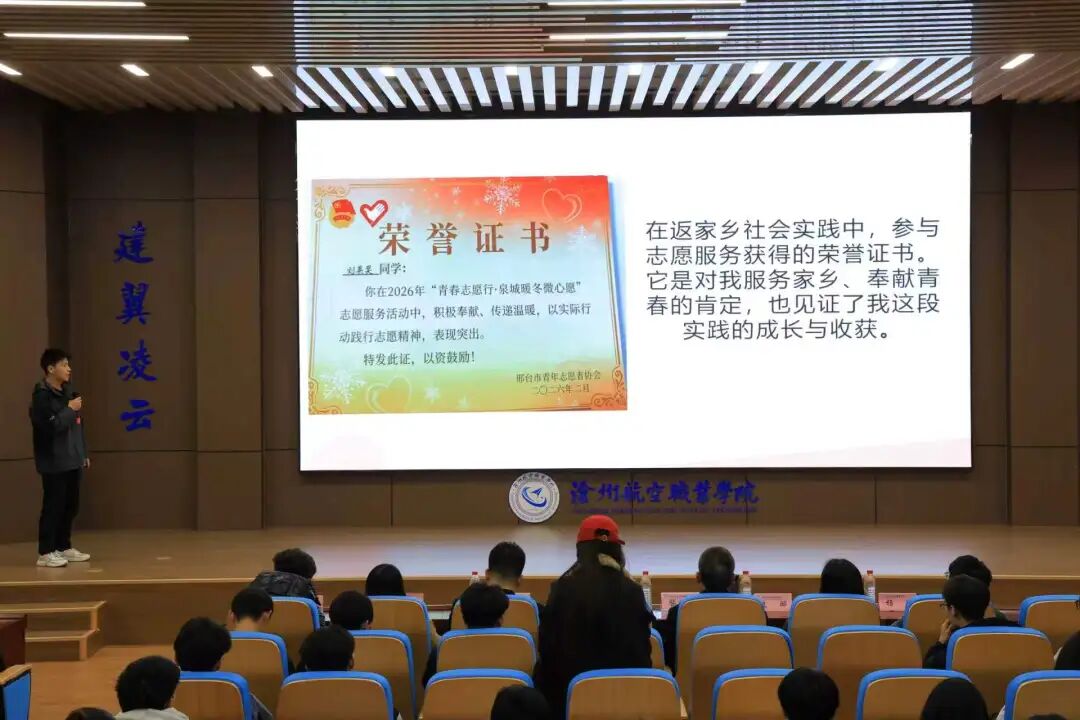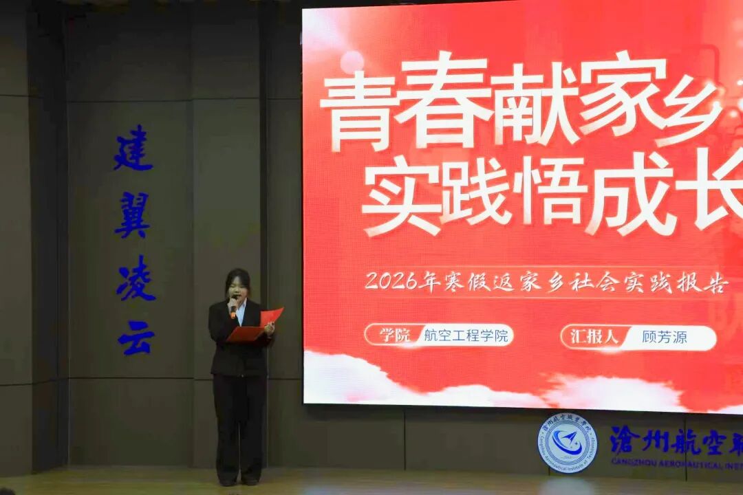 为深入总结2026年寒假大学生“返家乡”社会实践活动成果,表彰在服务家乡建设中涌现出的先进典型,激励广大航院学子积极投身乡村振兴与社会服务的大潮,近日,我校在崇德楼学术报告厅举行2026年寒假大学生“返家乡”社会实践优秀个人表彰暨“返家乡”社会实践优秀代表座谈会。