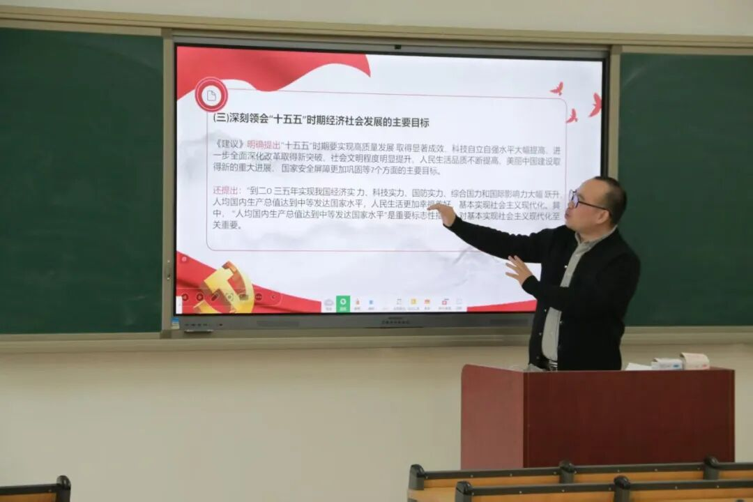 为引导化工食药学院全体教师深刻领会党的二十届四中全会精神核心要义,将思想行动切实统一到党中央战略部署上来,近日,校长助理边洪泽深入化工食药学院宣讲党的二十届四中全会精神。