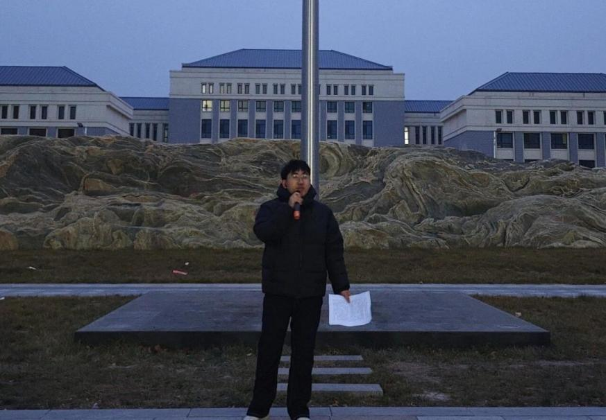 升旗仪式结束后,化工食药学院团总支书记杨涛以活动主题为题,围绕爱国精神的内涵与传承,结合青年学子的成长使命,阐述了爱国主义精神与品德修养提升的融合意义。他激励同学们坚定理想信念,在学习实践中锤炼本领,书写出属于自己的青春华章。