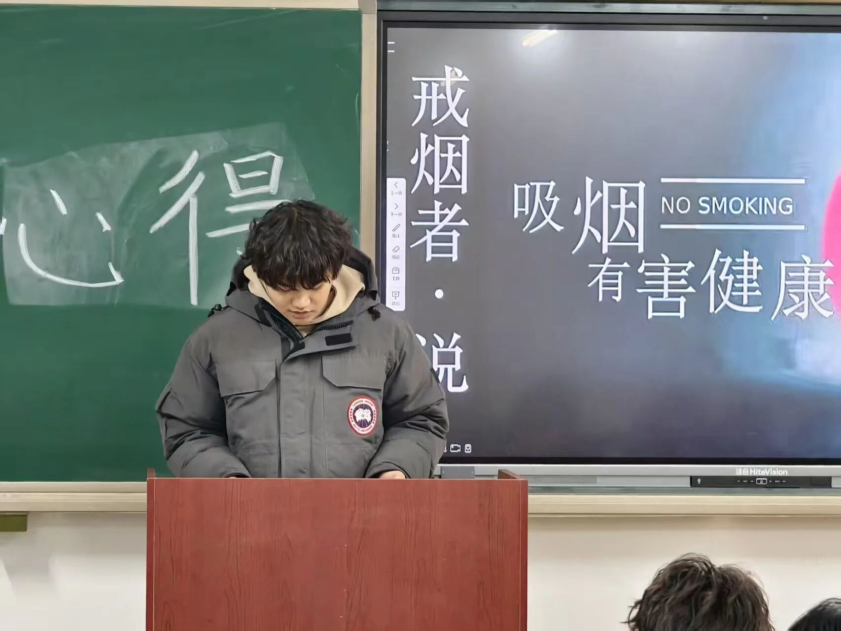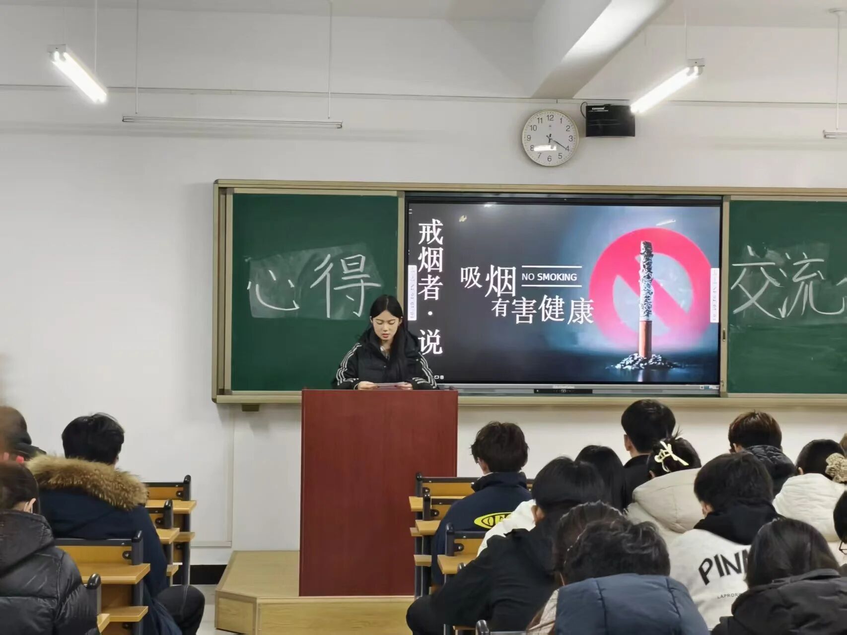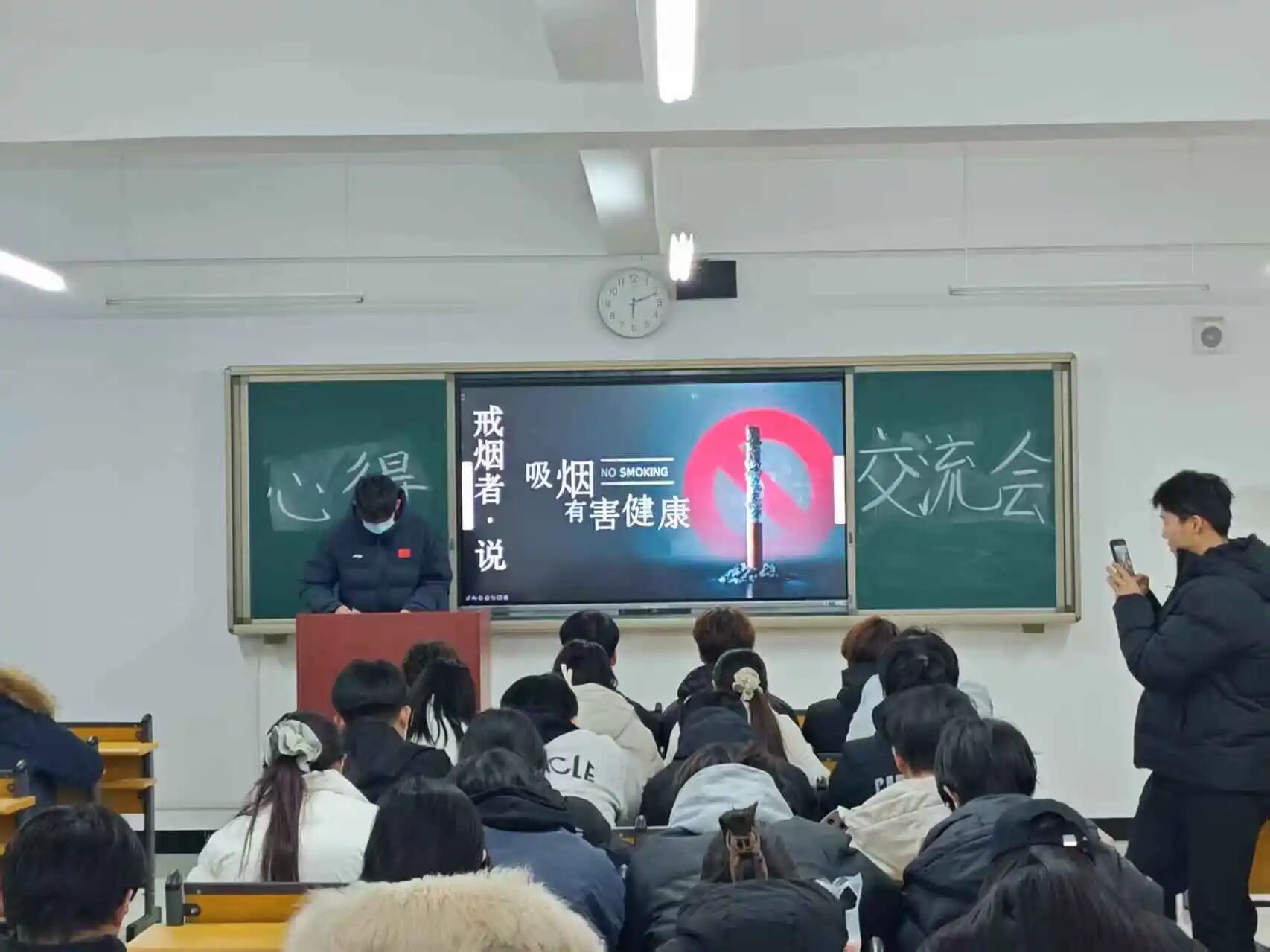 12月30日晚,第二期“戒烟者说”主题宣讲会在问学楼B201教室举行,吸引了各年级学生积极参与。多位在首期活动影响下成功戒烟或正在坚持戒烟的学生代表,登上讲台分享他们的持续行动与心路历程。