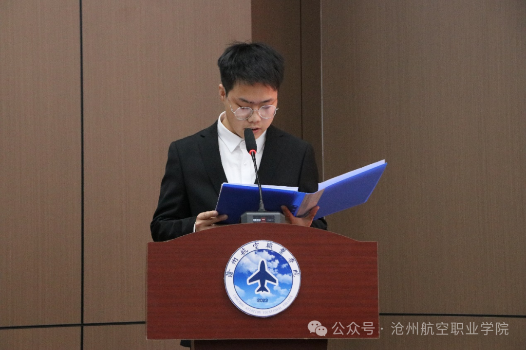 学生会主席团成员崔志佳宣读高校学生代表大会工作规则、智能制造学院学生会主席团成员李炳坤宣读了智能制造学院第一次团学代表大会委员候选人名单。